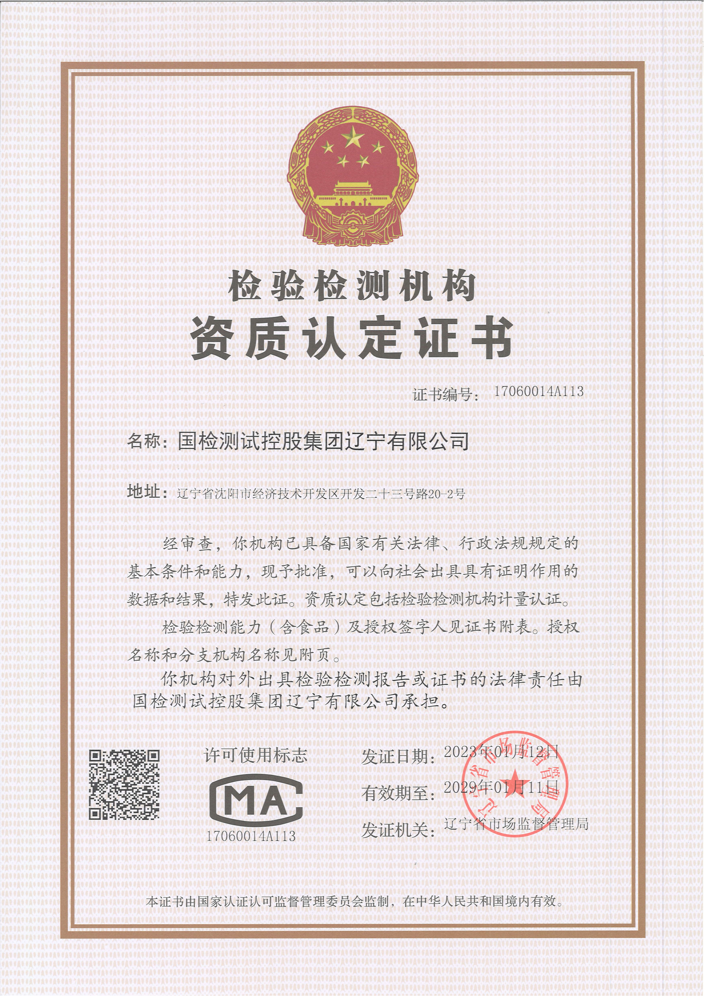 實(shí)驗(yàn)室認(rèn)可證書: