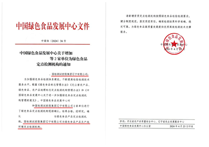 4月23日,中國綠色食品發(fā)展中心下發(fā)中綠體〔2024〕36號關于增加綠色食品定點檢測機構通知的文件,國檢測試控股集團遼寧有限公司(簡稱國檢遼寧公司)順利通過現場考核,獲批成為綠色食品產品及產地環(huán)境定點檢測機構。